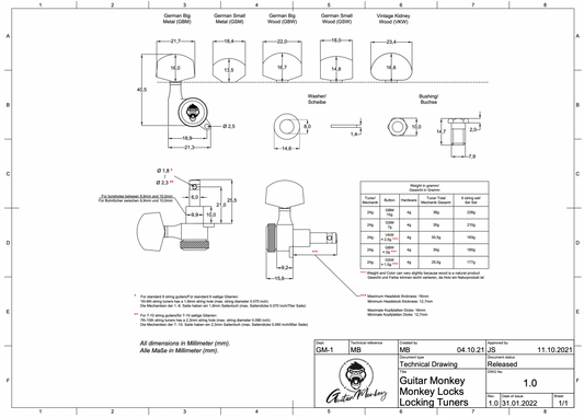 7-String Set - Custom Monkey Locks - Locking Tuners