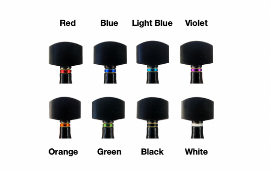 Um die Anordnung der Tuners auf dem Headstock (6l, 6r, 3l+3r, 4l+2r, 2l+4r), die Farbe und die Distanzringe zu wählen, klicke bitte auf die Tuners und wähle die Varianten in den Dropdown Menüs aus.