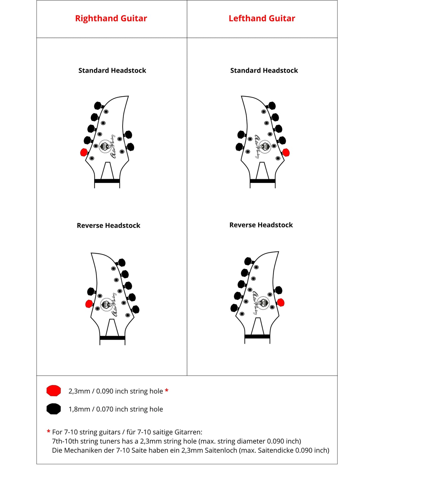 ✔ Bohrung Headstock: 9,9mm - 10mm